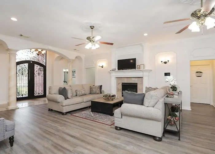 **Welcome to La Casa De Francella**, a serene oasis nestled just 15 kilometers from George Bush Houston Airport, making it an ideal choice for both leisure and business travelers. This charming retreat captures the essence of elegance and southern hospitality, offering easy access to the vibrant heart of Houston while providing a peaceful sanctuary for relaxation.